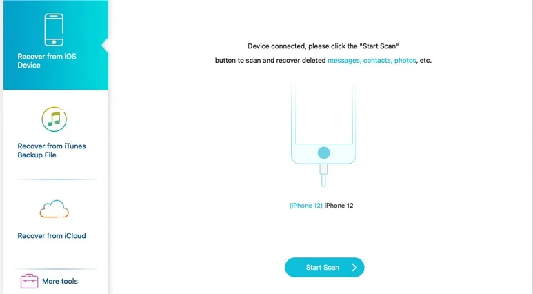 3. Sélectionnez « Récupérer depuis un appareil iOS » et cliquez sur « Démarrer l’analyse ».