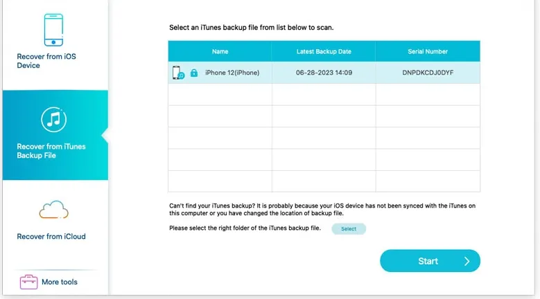 1. Sélectionnez le mode « Restaurer à partir d’une sauvegarde iTunes ».